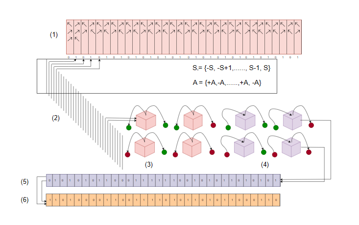 Initial State Setup: A series of particles are prepared in specific quantum states |ψ⟩. These states can represent superpositions of binary values (0 and 1).